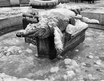 Le crocodile Posted on 19 mars 201820 mars 2018 by VincenT Pour une fois, on quitte le nord pour le centre-ville. Le crocodile des Tongiani, place du marché, marqué par la neige.